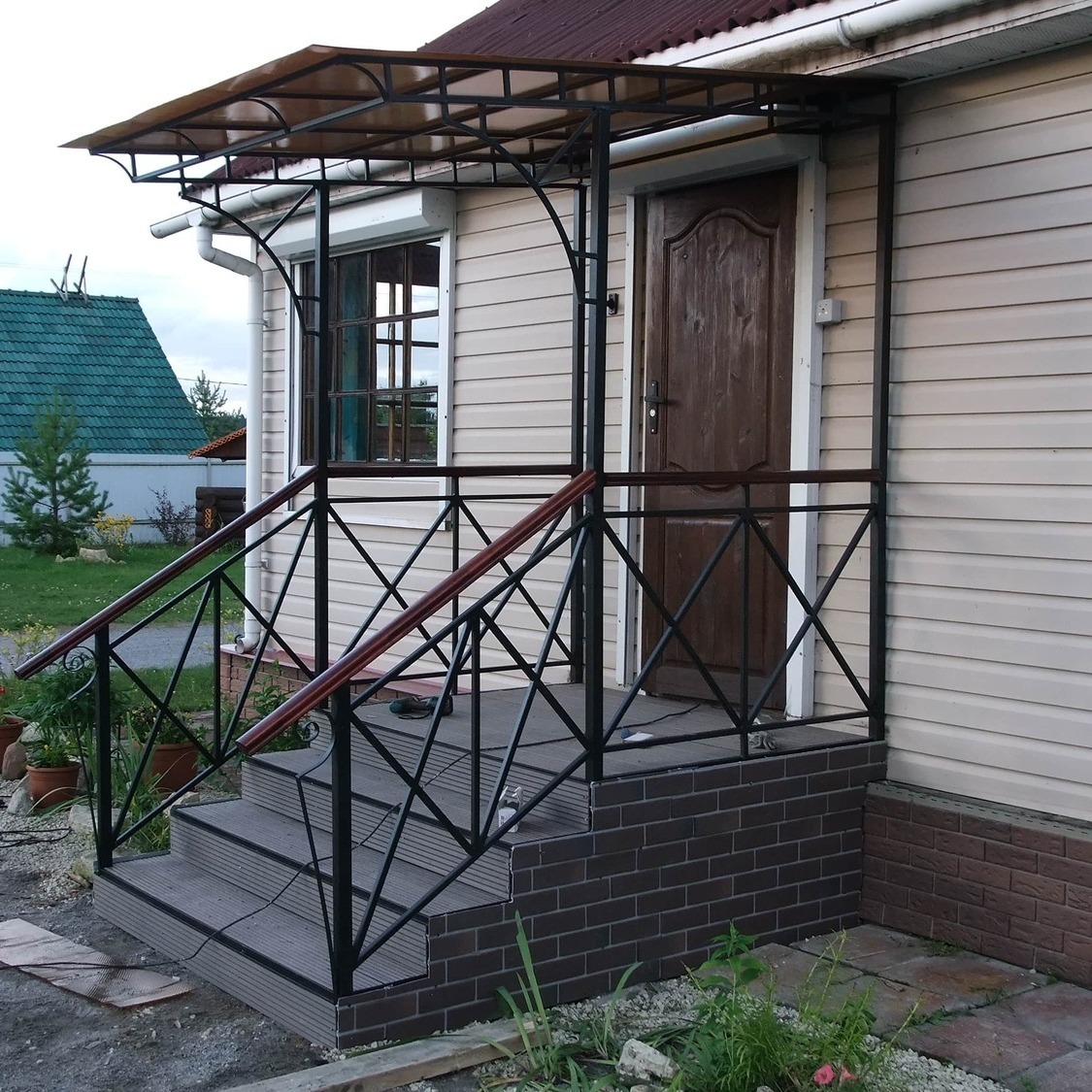 Изготовление крыльца-террасы из металла с навесом,
