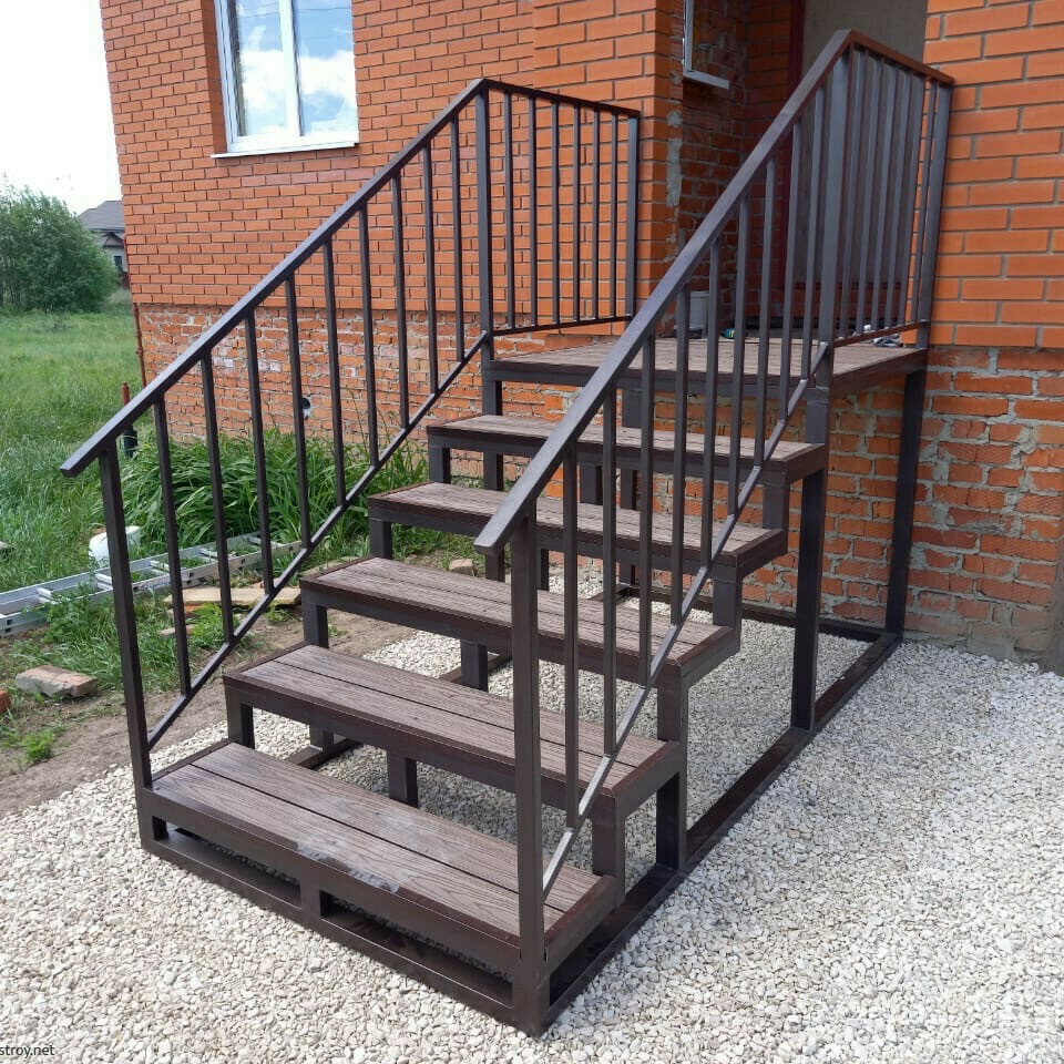 У нас вы можете заказать уличное крыльцо из металла под ваш размер с доставкой и монтажом. В зависимости от дизайна вашего строения можно составить индивидуальный проект крыльца.